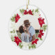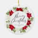 Poinsettia Flower and Pine Round Christmas Ceramic Tree Decoration