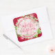 Merry Christmas personalized square stickers feature modern, elegant winter flowers and a pink poinsettia with your name and greeting in chic lettering. MATCHING items in our store.