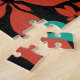 Enjoy piecing together this poinsettia jigsaw puzzle. Make a cup of tea, relax, and unwind with this gentle activity. The simple yet pleasing design of leaves includes reds and greens set over a black background. Choose from multiple sizes for a range in difficulty or time to assemble. Great for a gift for the holidays but any time of year for lovers of these colours and poinsettias.