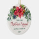 Celebrate your First Christmas Engaged with this elegant ornament. It features a watercolor Poinsettia with an arrangement of mistletoe, pine branchlet, pine cones, berries and sleigh bells. The background colour can be changed. You can adjust text according to your requirements. On the reverse - your wedding photo