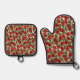 Poinsettia Pattern Christmas Oven Mitt & Pot Holder Set