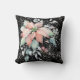 Poinsettia Snow scene, leaves, berries, corsage, 2 sided, two sided throw pillow with a black background - The soft watercolor winter scene with poinsettias, leaves and a blustery snowy background is so dramatic on this black background. The one side has the watercolor poinsettia with berries and leaves and the other side has the blustery winter scene with red berries. Great for a winter birthday, Christmas, Hanukkah, or whatever the winter season may bring to you. Merry Christmas from Kristin 'n' Steve at KNS Gear, and thanks for shopping our Christmas Store!