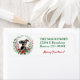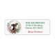 On this Holiday return address label, an adorable Doberman Pinscher puppy is framed within a green Christmas wreath with a red poinsettia at the bottom. Your custom text is in green at the right, with a text field for a greeting in red below.