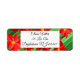 These return address labels have a Christmas design of poinsettias scattered around on a field of green stripes.