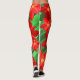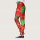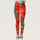 These leggings have a Christmas design of poinsettias scattered around on a field of green stripes.