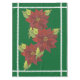 This pretty holiday tablecloth features a green background that you can change to any colour you want easily before ordering! Lovely at the table all season long, the centre has three beautiful red poinsettias on a green background with white trim on all four sides.