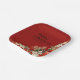 Black text on a red base background. A timeless design with winter floral for your Christmas season or events year after year.
