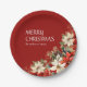 Merry Christmas and Family name Poinsettias round Paper plate.
