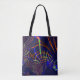 Pointed curves from lime green to coral and blue tote bag