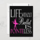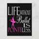 This design with a saying "Life without ballet is pointeless" features a ballet dancer in a tutu standing en pointe over the word "pointe" highlighted in pink. A great gift idea for the ballet student, teacher, or their family. www.Gifts4Dancers.com