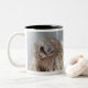 Pointer dog biting tennis ball, close-up Two-Tone coffee mug