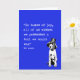 Humourous pointer in a top hat card with a quote from WH Auden - "In times of joy, all us wished we possessed a tail we could wag"