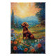 Pointillism Dachshund Exploring A Meadow Filled With Blooming Flowers
