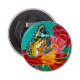 Very cute and compact little bottle opener. Also very fond of the magnet, both for sticking to the fridge and holding on to the bottle cap when trying to open it. Good quality print. As pictured.