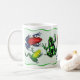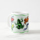 The mug's design features a wrap-around image of colourful poison arrow frogs illustrated by artist Dawn Witherington.