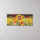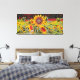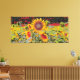 An abstract colour field of sunflowers, with red and black polka dot background.