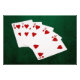 Five playing cards forming the poker straight flush hand. A straigh flush is a hand that contains five cards in sequence, all of the same suit. This is the hearts suit straight flush.