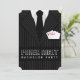 © Sunny Mars Designs - Pinstripe Suit: Poker Ticket Shape Casino Bachelor Party Invitations - Customisable Las Vegas casino night or poker night bachelor party invitation with a black and grey or grey pinstripe suit or tux / tuxedo, a black tie and white shirt with a set of four aces protruding out of the pocket. Personalise it by adding your own name and details. You can change the text font and size by clicking on the 'customise it' button.