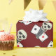 Smartly dressed and confident skeleton poker player holds up a pair of aces in this cool poker design.
