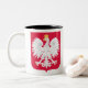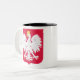 The coat of arms of Poland is a white, crowned eagle with a golden beak and talons, on a red background.