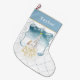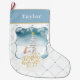Personalise this sweet Christmas stocking with your name, prior to placing into your shopping cart. Both sides feature a sweet friendship between a polar bear and a penguin standing next to their lighted Christmas tree.