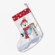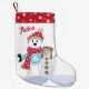 A cute stocking for kids with a polar bear making sure he gets memories with his friend the snowman . It also has a faux red border with polka dots . Personalise it with a name using the template . Feel free to change the font type and size if needed .