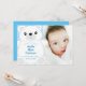 Cute polar bear baby shower cartoon design is great for a winter shower to celebrate a new baby boy on the way with the blue background!