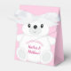 Welcome a new baby girl this winter with this cute polar bear baby shower design with a pink background. The adorable soft sweet fluffy polar bear is drawn like a cuddly stuffed animal.