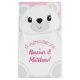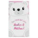 Welcome a new baby girl this winter with this cute polar bear baby shower design with a pink background. The adorable soft sweet fluffy polar bear is drawn like a cuddly stuffed animal.