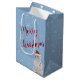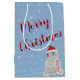 Polar bear with a Christmas candy cane on snowflake pattern and a blue background