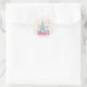 Adorable cream colour round Holiday sticker featuring two polar bear cubs decorating a Christmas tree . Personalise it with your own text . Also available in blue .