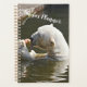 This design features a polar bear enjoying a piece of fruit in a calm, natural setting. Soft white fur and a gentle expression create a warm, approachable wildlife moment with a playful touch. Natural tones and subtle textures highlight the peaceful atmosphere and the bear’s relaxed pose. Personalise the front with a name in white Delighted font to create a thoughtful, nature‑inspired planner.