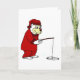 Cute polar bear Christmas greeting card shows a bear ice fishing wearing his red pyjamas and matching Santa cap. Unique, cute Christmas card design, but suitable for all winter and other occasions. Or any time of the year if a person loves polar bears or ice fishing. Personalise to your preferences with a personalised greeting, or leave blank for handwritten message. We also have this cute fishing polar bear cartoon design on other gifts, including shirts and other apparel.