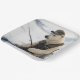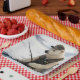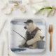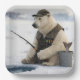 A polar bear ice fishing on a frozen lake, with its hard-earned catch stored in a bucket