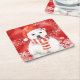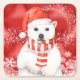 polar bear in a santa cap - snowflakes w white square paper coaster