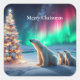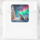Polar Bear Mum Cubs Christmas Tree Northern Lights Square Sticker