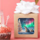 These seasonal Christmas holiday square stickers feature an AI generated image of a mother polar bear and her two cubs on the arctic ice, gazing in wonder at a beautiful Christmas tree with tiny colourful lights all over. In the background can be seen a magnificent display of Northern Lights dancing across the sky, the Aurora Borealis, in shades of green and pink. Use Zazzle's many different font styles and colours to customise the text in the image to your preference, or leave it blank if you prefer. Zazzle also has many backgrounds that you my choose from, as well as icons that you can add to make the image your own. Have fun making it just the way you like! If you need any help customising this design, please don't hesitate to contact me, and I will be more than happy to assist you. You may contact me at KarenCoffelt@wolfmoonartanddesign.com or through Zazzle by clicking on the Chat button (please be aware that I am not available 24/7 to chat, but I will get back you ASAP). Thanks for looking!