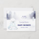 Polar bear, winter wonderland theme design is a lovely blue and white, snow covered forest background with cute bear cub at left. This is a How Big Is Mummy's Belly Baby shower game to enclose with invitation. Templates are provided for you on back.