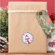 Wrap up mailing or your holiday gift with a pretty round seal that features an air mail envelope's borders in dark blue and red. It has an illustration of Rudolph the reindeer in a cosy scarf and winter hat. North Pole Post Office uses air mail all the time because all Christmas mail must arrive on time. The personalizable text reads NORTH POLE - EXPRESS DELIVERY - SANTA MAIL