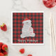 Cute polar bear with candy cane on red and black buffalo plaid.