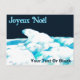 A somewhat stylized, blue-toned image of a Polar Bear (Ursus maritimus) resting on the polar ice pack on on a dark, moonlit winter night. French text reading, "Joyeux Noёl" appears in glowing blue and white. Add your own additional text.