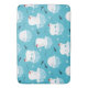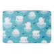 Playful polar bears in Santa hats float on icy blue seas surrounded by igloos, fish, and snowflakes. A cool Christmas favorite.