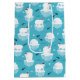 Playful polar bears in Santa hats float on icy blue seas surrounded by igloos, fish, and snowflakes. A cool Christmas favorite.