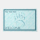 A simple, blue-toned, digital rendering of a Polar Bear paw print on the Arctic ice pack. Text reading "WELCOME" also appears. You may add your own additional text.