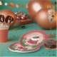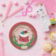 Adorable Christmas paper plates with a very curious polar bear cub wearing antlers peeking in Santa's bag . Personalise them with your text .