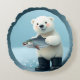 This is a polar bear pillow cushion. It is designed with a happy polar bear holding a salmon. Have a nice day.