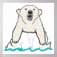 Polar Bear features a drawing of a polar bear hanging onto a piece of melting ice floating in the cold Arctic sea. A climate change message about the fragile environment of the polar bear and an appealing image of this magnificent predator.