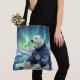Polar Bear Sitting Under Northern Lights Tote Bag