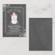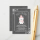 A baby shower book request card featuring an illustration of a baby polar bear wearing a pink hat and scarf. Background is chalkboard inspired with snowflakes at corners.