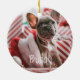 This cute christmas / holiday ornament features a word "beary merry christmas" and a polar bear wearing a blue sweater and a pom beanie / snow cap on blue grey background with snowfall. The reverse side features your photo and your text. Personalise it for your needs. You can find matching products at my store.